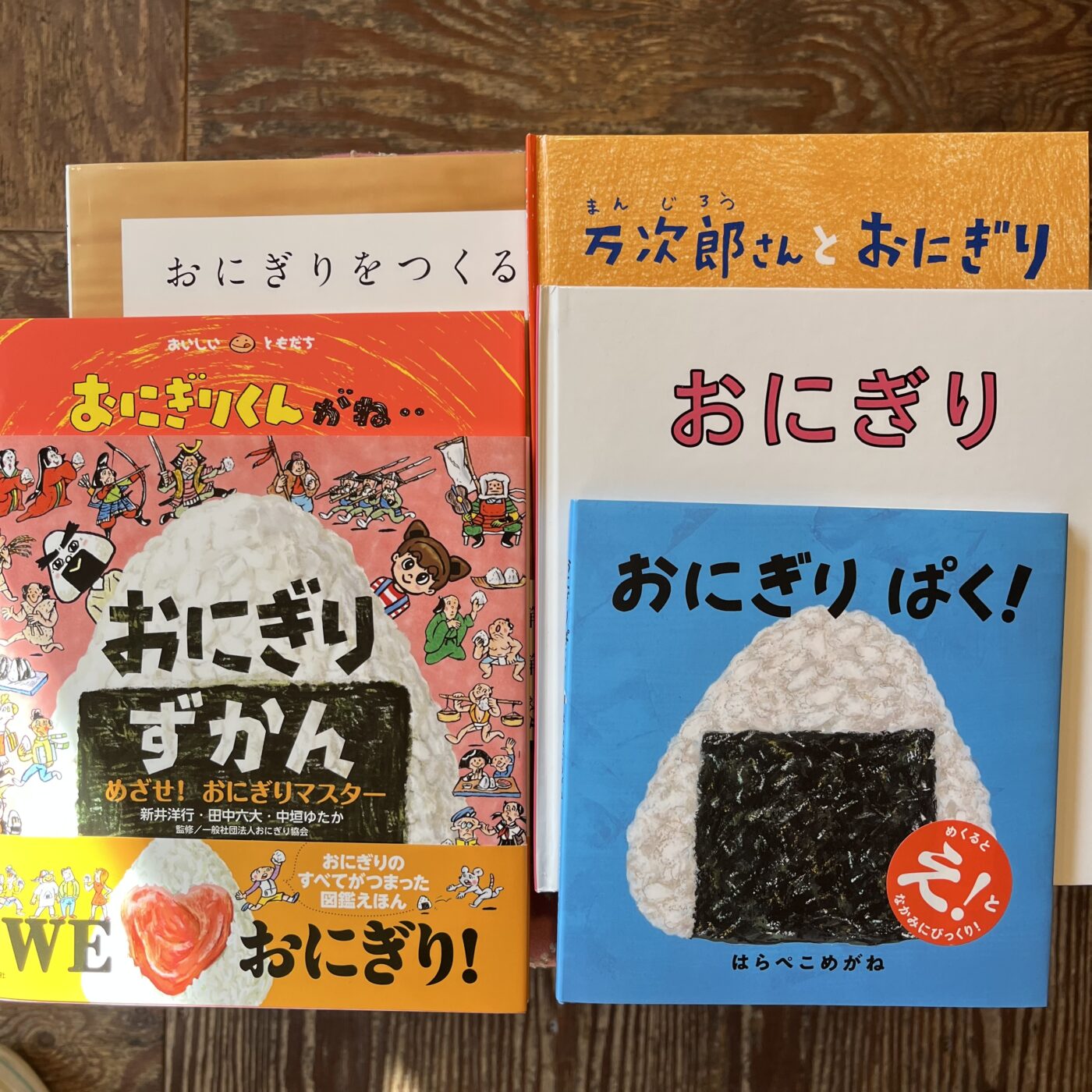 『おにぎり』平山英三ぶん 平山和子え 福音館書店 1,100円 1981年月刊誌として出版 『おにぎりくんがね・・』とよたかずひこ 童心社 990円 2008年出版 『おにぎりをつくる』文・高山なおみ 写真・長野陽一 ブロンズ新社 1320円 2020年出版 『おにぎりぱく!』はらぺこめがね 白泉社 990円 2025年出版 『おにぎりずかん めざせ!おにぎりマスター』新井洋行・田中六代・中垣ゆたか 監修・一般社団法人おにぎり協会 講談社 1650円 2025年出版